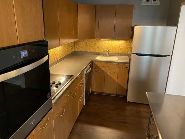 Largest move-in ready 1br in well-run, full-service building. This condo has original and refurbished cabinets in the kitchen, a new oven & dishwasher, Corian countertop, integrated sink, stainless steel fridge, and pre-engineered walnut floors. Northern, lake (east) and western views of the sunset and Wrigley Field! Perfect East Lakeview location, steps to the lakefront and bike path, the beaches, tennis courts, a golf course, restaurants, shopping, express bus, and train. The building has on-site cleaners, 2 rooftop decks, an exercise room, 24 hr door staff, on site management & maintenance. Monthly assessment includes heat! Garage parking available in building. Unit being sold as is.